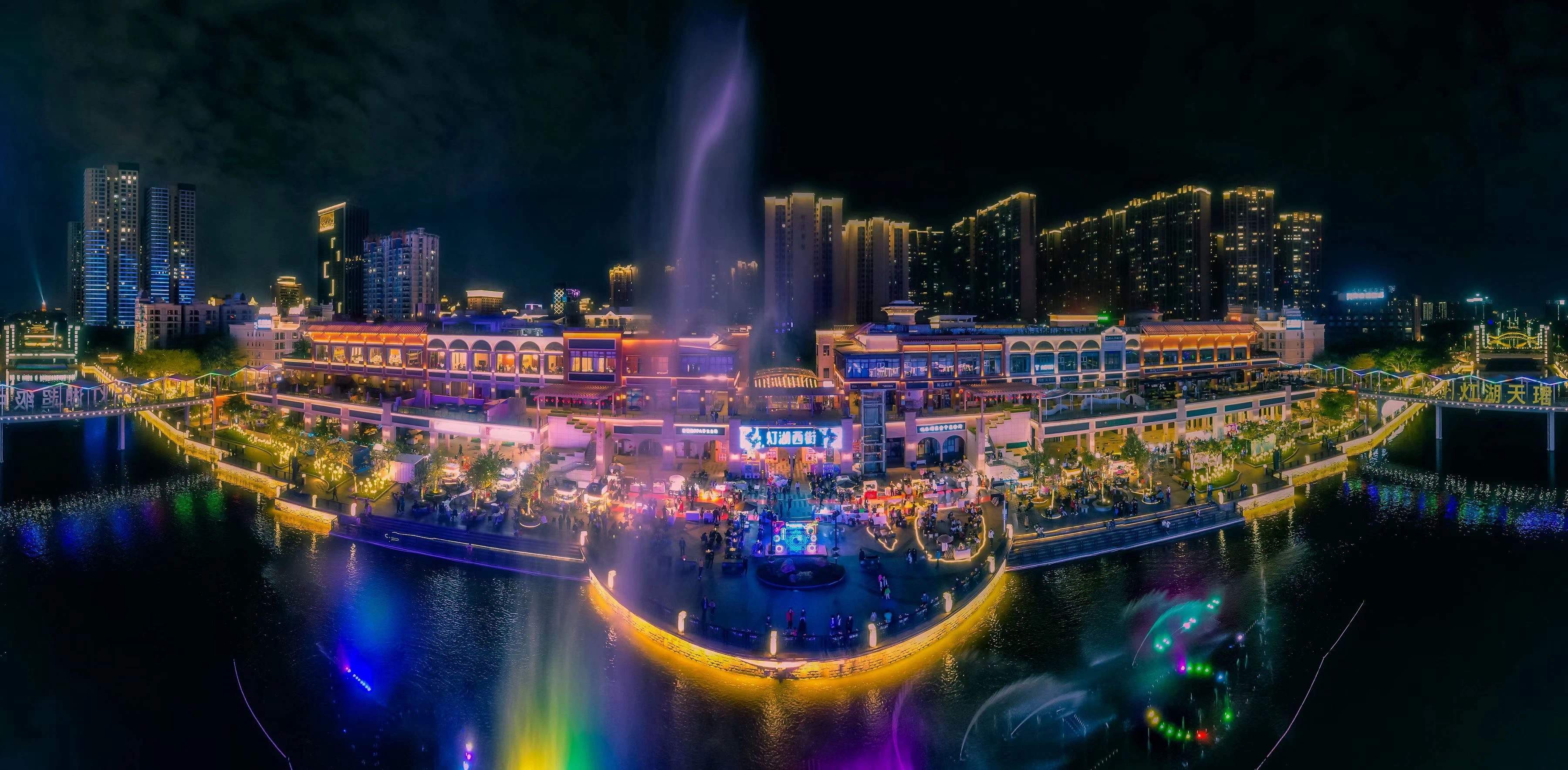 灯湖西街位于南海区桂城街道千灯湖水道沿岸,总占地面积5.2万㎡,总商业建筑面积2.7万㎡。2022年被列为佛山市重点打造的网红打卡点之一,项目以“城+水+街”为主题打造,是景观资源丰富的开放式商业街区,有佛山“酒吧街”之称,是千灯湖夜市的汇聚地。